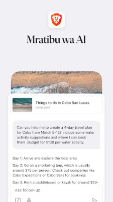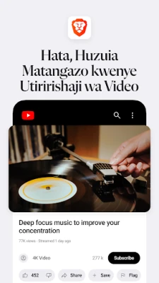 Karibisha uzoefu wa kuvinjari mtandao usio na kifani, unaoweka faragha yako mbele, na kasi isiyoyumbishwa. Brave imejitolea kukupa uhuru wa kweli mtandaoni, pasipo matangazo ya kukera na ufuatiliaji usiohitajika. Na sasa, kwa kuanzishwa kwa Brave Leo, msaidizi wako wa akili bandia yupo tayari kukusaidia moja kwa moja ndani ya kivinjari chako cha Brave. Uliza swali, tafsiri maandishi, au pata majibu ya haraka kwa urahisi na bila gharama yoyote.