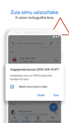 Je, unachoshwa na simu za kero zisizotakiwa? Programu ya Simu inakupa uwezo kamili wa kudhibiti mawasiliano yako. Kwa mfumo mahiri wa kutambua na kuzuia simu taka, utaweza kuepuka walaghai, wauzaji kwa simu, na wapigaji wengine wasiohitajika. Utapokea arifa za onyo kuhusu namba zinazoshukiwa, na uwezo wa kuzuia nambari hizo kabisa usisumbuliwe tena. Zaidi ya hayo, utafahamu anayekupigia hata kabla hujajibu. Kitambulisho cha kina cha Programu ya Simu, kinachotumia teknolojia ya Google, hukupa taarifa kuhusu biashara zinazopiga simu, hivyo kukupa uhakika wa kujibu simu muhimu kwa ujasiri.